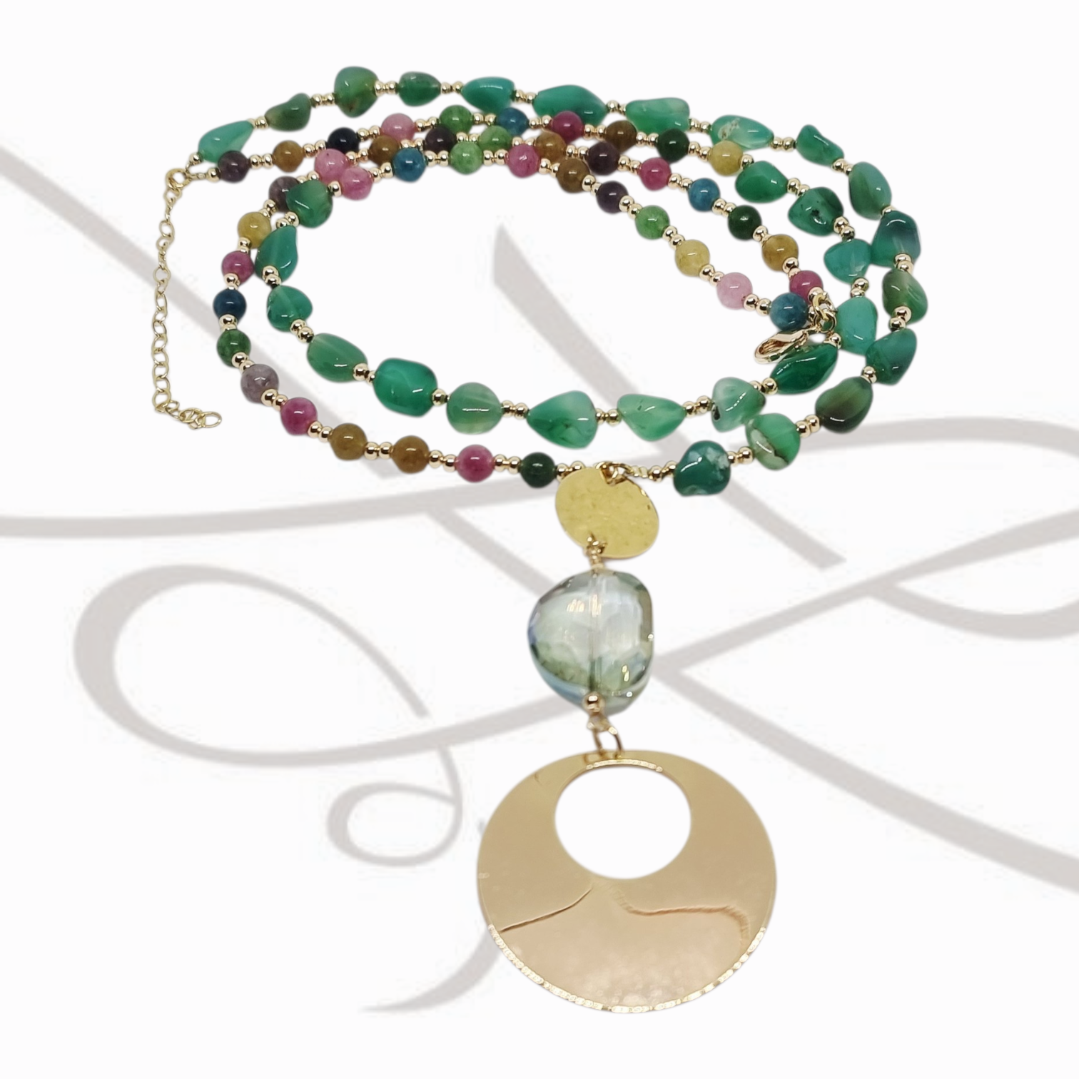 La tourmalina es una piedra semipreciosa que viene en muchos colores. Conocida por su brillo y variedad de tonos, se utilizada para agregar color y personalidad.