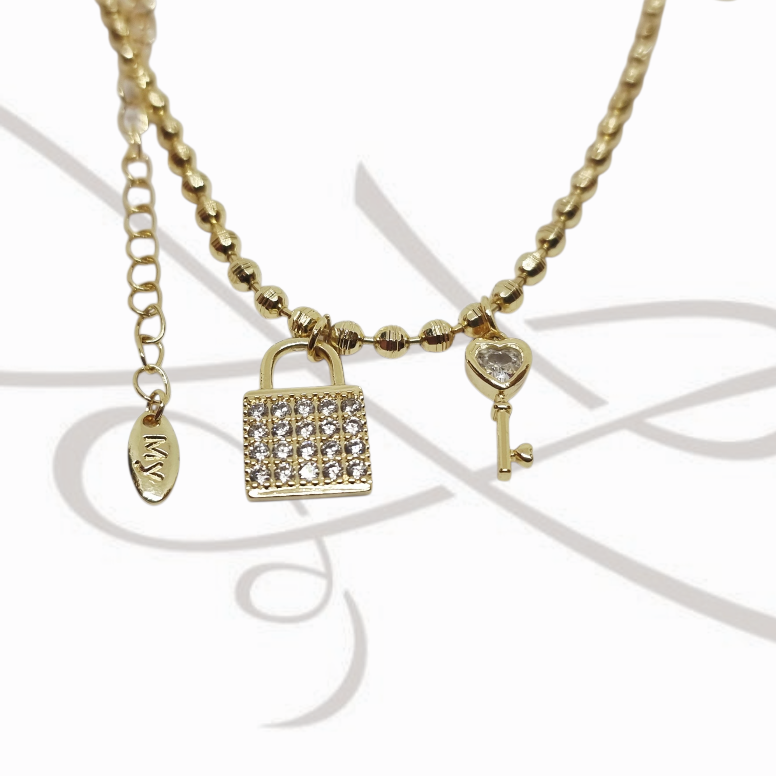 COLLAR CON DIJE ORO LAMINADO DIAMANTADO CANDADO Y LLAVE cantidad