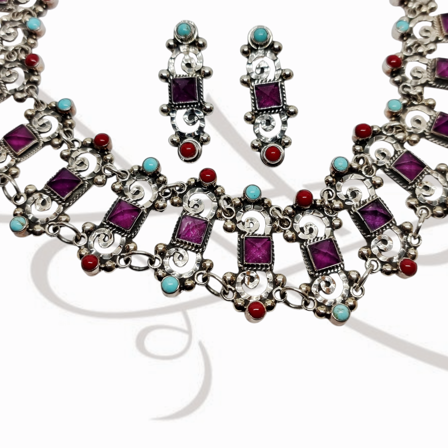 JUEGO PLATA LISO ENTRELAZADO COLLAR Y ARETES AMATISTA