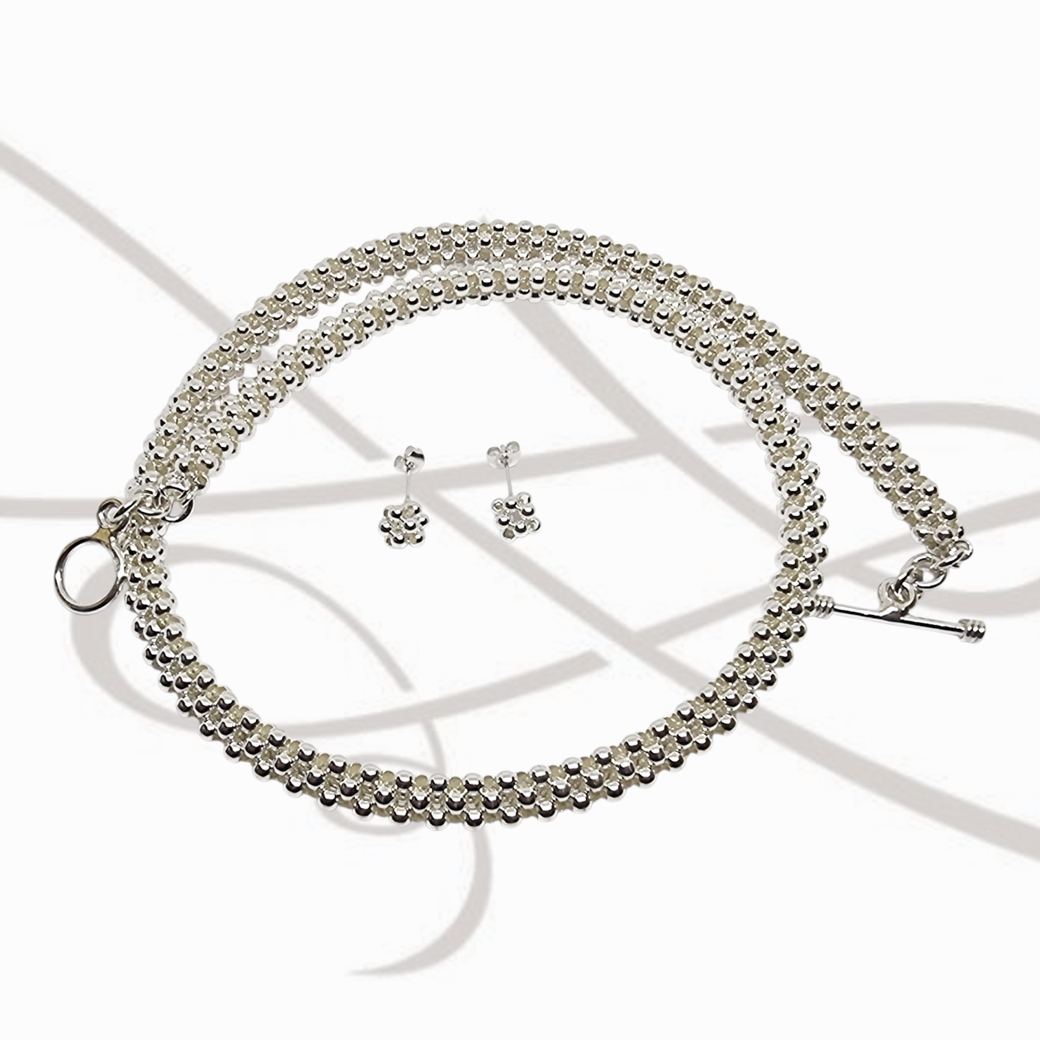 JUEGO PLATA PERLA SENCILLA CADENA