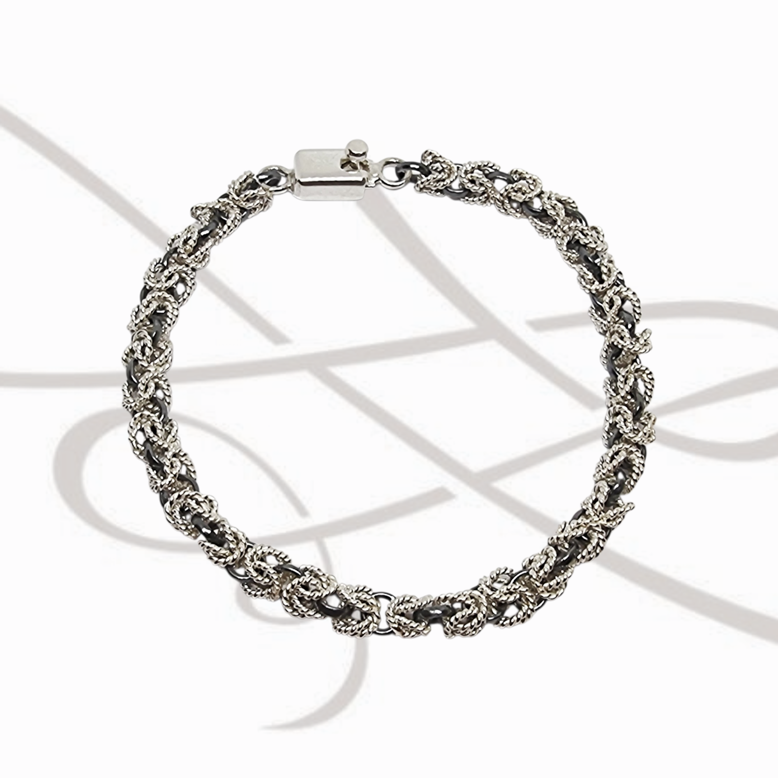 / PULSERA SIN DIJE PLATA BICOLOR TEJIDA LISA TRENSADO